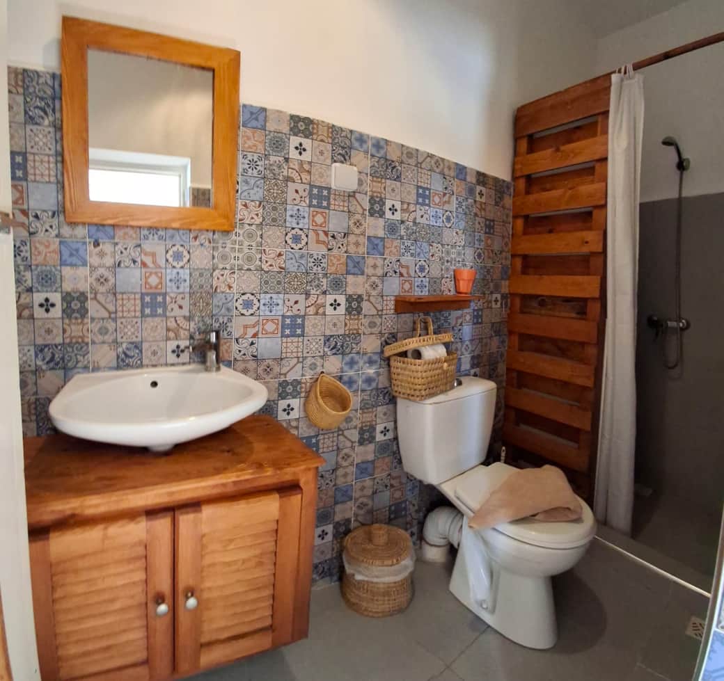Bed linen, Blow dryer, Iron and ironing board, Shower, Towel set, Washbasin, Washing machine